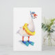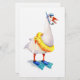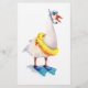 Watercolor painting of White Goose in flippers with swim goggles and snorkelling mask.