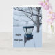 Snow and lamp light outside scene with trees card