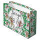A Large Gift Bag In Green With Designed Boys And Girls Snow Angels