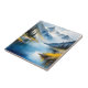 Beautiful watercolor painting of snow capped mountains and a lake