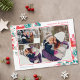 Snow Christmas green red floral 3 photos Holiday Card