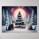 Embrace the serene beauty of winter with this art print of a snow-covered Christmas tree with cats glowing in a magical winter night.