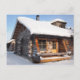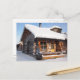 Postcard of a traditional snow-covered wooden log cabin in Lapland. An ideal place to spend the christmas holidays.