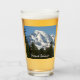 Pint glass for your favorite, cold beer and other beverages that features a scenic photo image of snow covered Mount Rainier, located in the Pacific Northwest state of Washington.