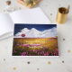 Wedding guestbook with the image of beautiful snow-covered Alps with a field of purple flowers.