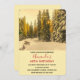 A birthday party invitation with a beautiful nature photograph. An isolated winter path with tall snow covered pine trees. A golden twilight hue creates a magical feel to this photo.