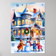 Snow-Covered Victorian House Wall Art Print Poster