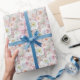 Snow crystals blush roses seamless pattern Wrapping Paper. White and Delicate watercolor roses in pale pink, peach and white on a blush background with white snow crystals.