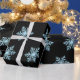 Beautiful wrapping paper featuring blue snowflakes on black background.