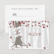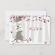 A winter wedding rsvp featuring an illustration of a tree in a snowy forest. Tree has red, white, and silver leaves, exposed roots, and a trunk wrapped with banner that can be customised with bride & groom's names. Look for matching wedding invitations and more at Jill's Paperie.