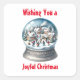 This customisable Christmas sticker features a snow globe with people enjoying the snow.