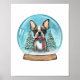 Adorable artwork of a Boston Terrier in a snow globe, originally a watercolor painting.