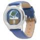 The blue band is the right color for a boys watch. My grandson loves lacrosse and the watch is easy to put on. He is ten years old. The lacrosse picture is very clear and I like the blue hands on the watch. It's good for teaching time.