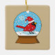 Snow Globe with Cute Red Cardinal Ceramic Ornament