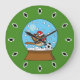 Snow Globe with Cute Sparrow Playing Soccer Large Clock