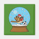 An illustration of a xmas snow globe with cute sparrow wearing a red santa hat and a red scarf, and playing a soccer ball on a snowy day. This cute cartoon bird Christmas design is a gift idea for winter holiday lovers, bird lovers and waterglobe lovers. Also a good gift idea for soccer mum and kids.