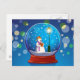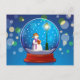 Snow globe with snowman singing postcard