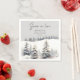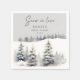 Snow in love winter pine forest bridal shower tableware template napkins, pastel dusty sage green watercolor pines invitation for winter themed bridal shower personalised napkins.