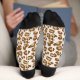 Socks in a digital textile print in a textured snow leopard pattern - leopard spots in tan, accented with beige, on a white background