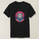 I give wanted to give this a 4 instead of a 5 because these Basic DARK T0shirts run unexpectedly SLIM or Narrow. Which is great if you do not have a potbelly, but I have a paunch. It isn't the shirt's fault that I've got a beer belly. The design and shirt itself is a quality cotton shirt. The color is more of a deep purple, but still a very pretty color. The Basic DARK T-shirts run a bit SLIMMER than the Basic Ts. The neck is a fraction narrower (or seems to be narrower) also. I'm a paunchy middle-aged woman and my neck is 12 inches (31cm) thick and the neckline fell about the same as in the photo of the man, and I had the desire to tug it a bit. So if you're a thick necked man or like loose shirts, be aware these are slimmer shirts. Once I get rid of my lockdown paunch it'll look great. The shirt washed well in cold water with no apparent bleeding. We don't have a dryer, so it hung dry. Did not shrink. Love the colors and the design. The design looks smaller on my shirt than it does on the model on-line. But still, it looks good on the shirt. The printing looks as it does on the model, just the size seems fractionally smaller. Washed garment in cold water, hung dry and design appeared unaffected.