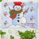 Snow man on blue background and snowflakes kitchen towel for your kitchen