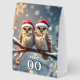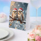 Bring instant holiday charm to your event with this adorable snow owl Christmas table sign, featuring two fluffy snow owls wearing Santa hats perched on a snow-covered branch. The soft gray bokeh background, accented with sparkling stars and Christmas baubles, creates a magical winter atmosphere that’s perfect for any festive occasion.