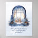 Celebrate classic winter warmth with this traditional poster variant. Soft white snowflakes drift across a textured snowy backdrop, while a hand-drawn frosted window frame reveals a cosy pine forest beyond. The phrase appears in flowing, brush-style script at the top, lending an old-world charm: “Through every frosted pane lies a world of endless possibilities.”