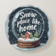 Celebrate the cosy charm of the season with this whimsical snow globe design featuring a classic red cabin nestled among snow-covered pine trees. Encased in a frosted glass globe, the heartfelt phrase “Snow place like home” floats above the serene winter scene, making it a perfect blend of holiday nostalgia and playful wordplay. The deep navy background sprinkled with falling snowflakes enhances the magical, nighttime ambiance, while the warm glow of the home invites feelings of comfort, warmth, and family togetherness. Ideal for holiday displays, seasonal décor, or gifting to winter lovers, this piece evokes the timeless joy of a snowy escape. Its storybook illustration style and clever typography bring a cheerful, welcoming energy that resonates during the holidays and beyond. AI generated artwork.