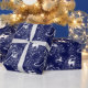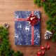 deep navy blue gift wrap with white toile de jouy inspired print. An elegant forest fairy takes a quiet stroll through a serene winter woodland, with deer, trees, and snow. Perfect for an elegant Christmas or winter holiday themed event.