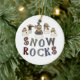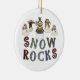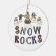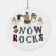 Several snowmen and a snow angel with text that reads "Snow Rocks" on a snowman holiday keepsake ornament you're sure to love!