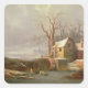 Snow Scene with Mill and Cottages Square Sticker