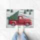 Snow Scene with Red Truck Door Mat