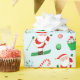 Skiing Christmas holiday gift wap or winter ski party decor featuring Santa downhill skiing.