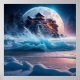 Snow Snowflakes, Full Moon with Beach Poster