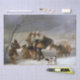 This design features a painting by the Spanish artist Francisco Goya (1746–1828). It shows a group of companions travelling through a cold and unforgiving landscape during the winter season. The ground is covered with white snow and there is a harsh wind blowing. The trees are bare, but their slender trunks are being blown by the gales. The friends have a donkey with them, which is carrying their belongings. They also have a small dog, which has a black-and-white coat. There appears to be a river in the landscape that has frozen over with ice. The original artwork was painted by Francisco Goya circa 1786.