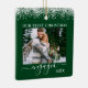 Snow Topped Our First Christmas Engaged Double Sided Photo Green Ornament - Front & Back Photos, Names on Back