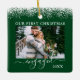 Snow Top Our First Christmas Engaged Photo Green Ceramic Ornament
