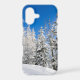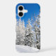iPhone case with snow on the trees under a blue sky in a ski resort area in winter on a clear sunny winter day.