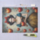 A beautifully painted rendition of Snow White, surrounded by vibrant red apples. The artwork is in a classic, hand-painted style, with soft brushstrokes giving it a vintage charm. The background features a serene faded blue, blending gently to ensure the design integrates seamlessly with decoupage projects. This subtle fading effect makes it perfect for furniture restyling, DIY crafts, or other creative endeavours, allowing it to harmonise with various textures and finishes.