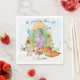 These magical and enchanting custom party napkins feature a colourful Snow White princess fairy tale theme. A golden magic mirror is placed in the centre with a sample photograph inside. You can personalise the napkin to include your own photo or other custom image. Gold glitter dust surrounds the mirror. Sweet baby forest animals and birds are placed around the mirror, along with pretty red roses and vines. A shiny red apple is placed below.