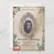 This magical and enchanting party invitation features a Snow White fairy tale theme. A vintage style background and antique frame are accented with whimsical vines and red roses. A sparkly red apple is placed in the bottom left corner. The centre of the invitation features a magic mirror inspired frame where you can place your own custom photo.