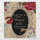 This magical and enchanting wine bottle label features a Snow White fairy tale theme. A golden magic mirror is placed across the front, with the text in the centre. The classic Once upon a time fairytale phrase is printed at the top in a whimsical gold font. A beautiful princess castle is placed in the bottom right, and an image of Snow White's hand holding a poisonous apple is printed on the left. Red roses accent the borders. The background is a rustic parchment paper design that resembles an old storybook.