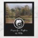An illustration of a snow white wolve head placed on top laurel monogram. The wolf has its mussel opened in a growl. The fangs are shown from the side view. The M is short for Monogram and can be easily customisable for a personal initial. Above the angry animal is photo of a untamed wild woods that can be changed with one of your own. With so many customised option its a unique keepsake gift.