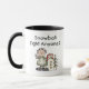 A ragdoll with her hands full of snowballs and her snowman friend get ready for a snowball fight! Text reads "Snowball fight anyone?" on these cute Snowball Fight winter holiday greeting cards, tote bags, T-shirts, and more!