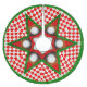 This red, green and white design features a Christmas gingham background and a large star to show off a circle of icy snowballs. A festive tree skirt that blends with any traditional Christmas decorations.