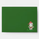 A cute custom envelope for your Holiday greetings . On the back , there is a small illustration of Snowbell the cow , kind of tangled in her Christmas lights . It says "Be Merry !" underneath , but you can modify the text if you wish to . The inside fold has a pattern of the same cow on a green background . Look for the matching stickers , labels and postage stamps .