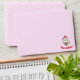 A pretty pink envelope for your Holidays mail with a cartoon cow holding Christmas lights .