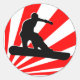 snowboard. red rays. classic round sticker