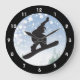 Snowboarding Design Clock with customisable accent colour (snowflakes) and customisable text. For no text, delete sample text and leave blank.