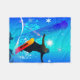 Snowboarding, snowboarder with board on blue backg fleece blanket